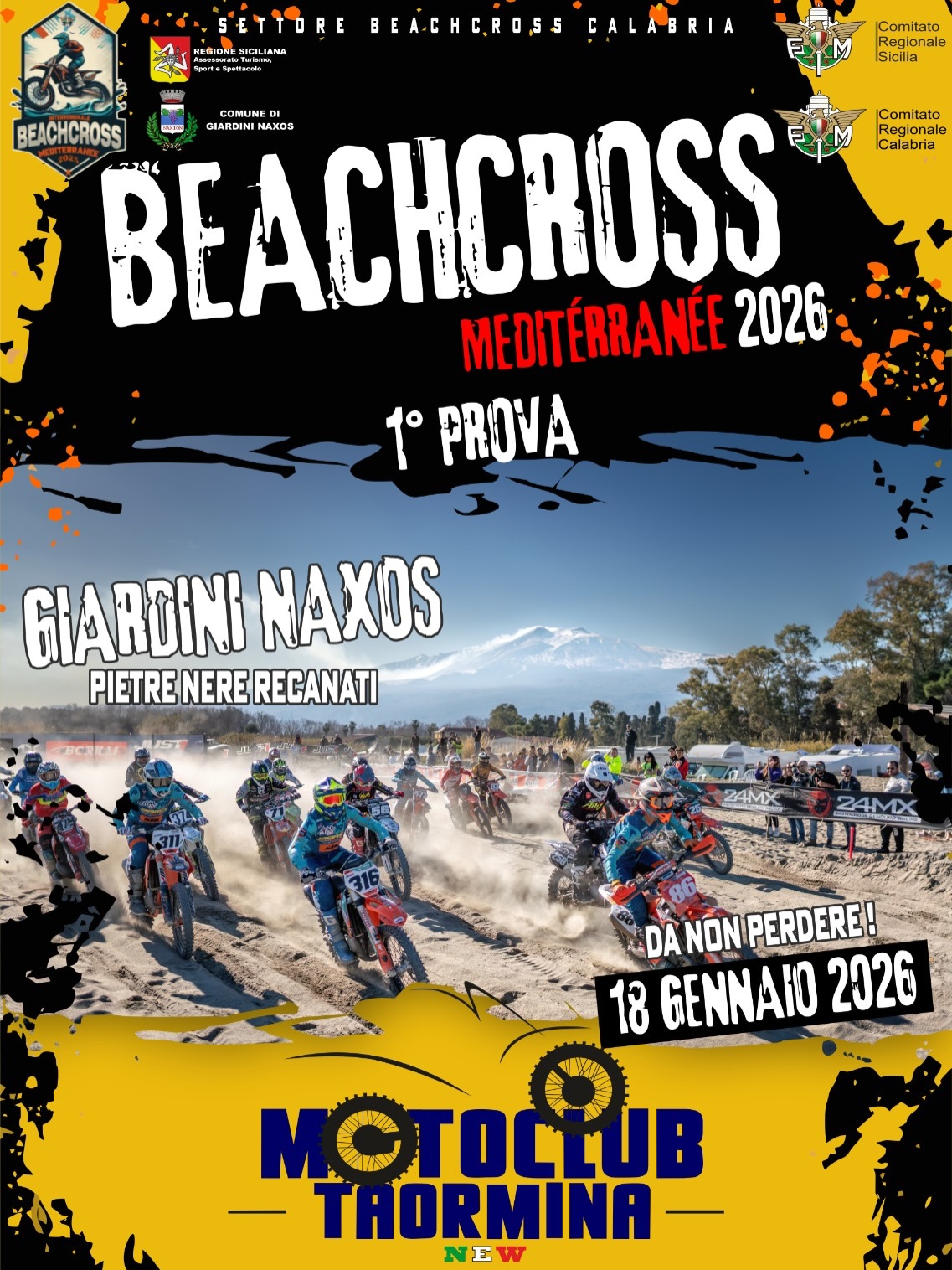 Domenica 18 gennaio si apre ufficialmente la stagione sportiva con la prima prova del Campionato “Beach Cross Mediterranèe”, organizzata dal Moto Club Taormina New.