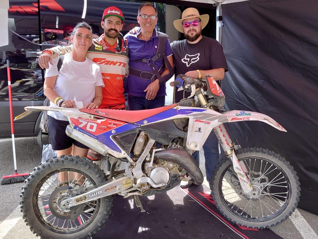 Nella foto il pilota con mamma, papà e Diego Morganti, direttore sportivo